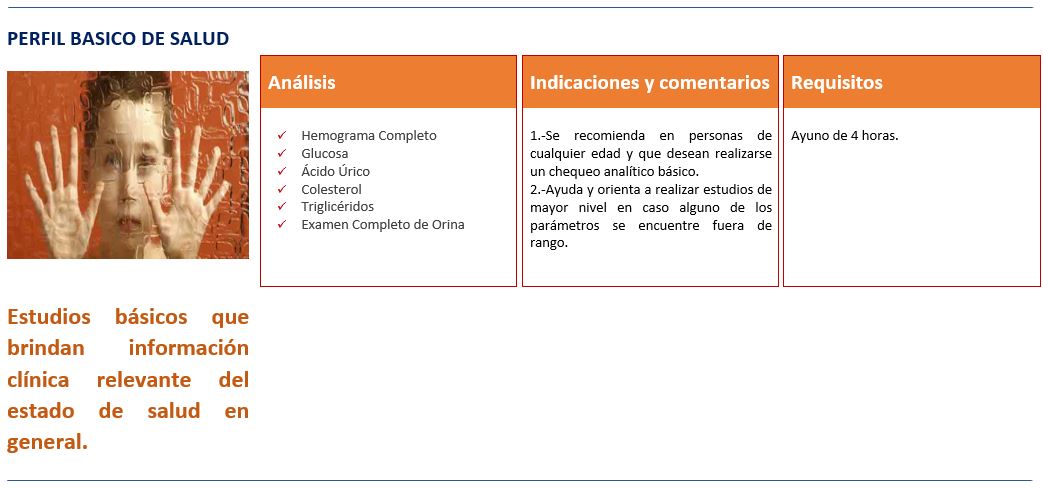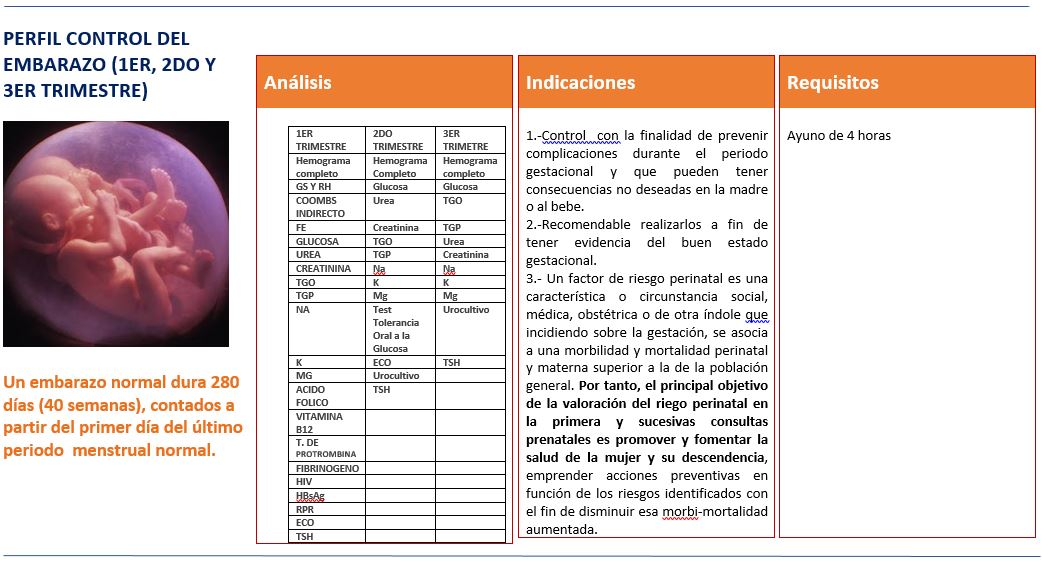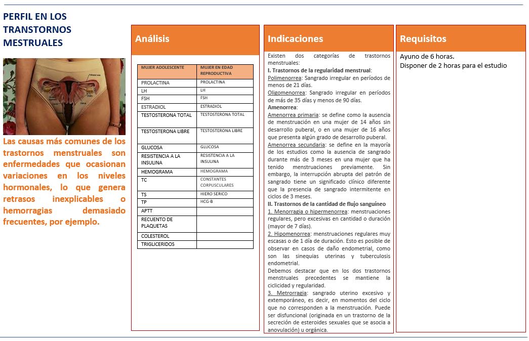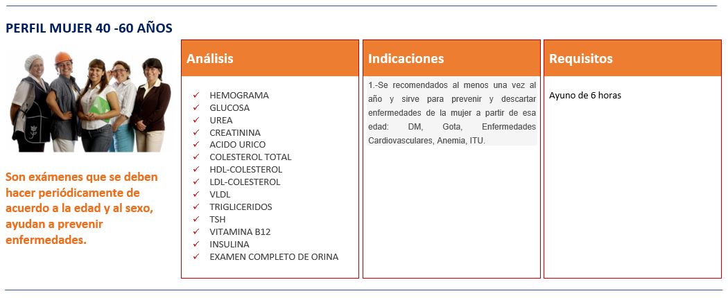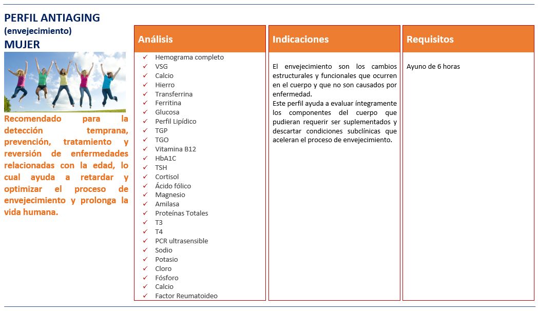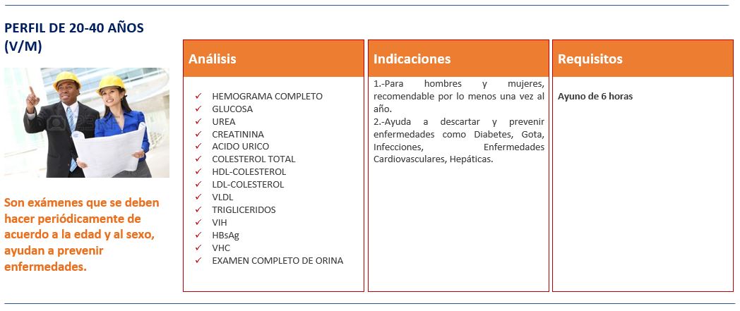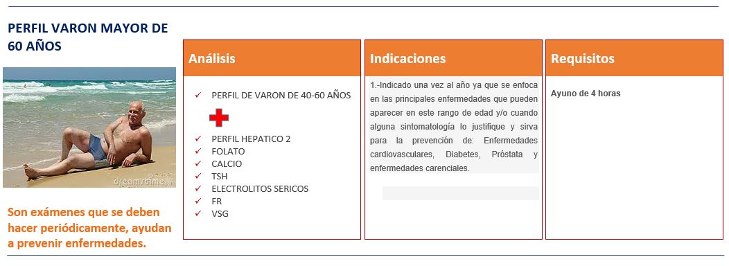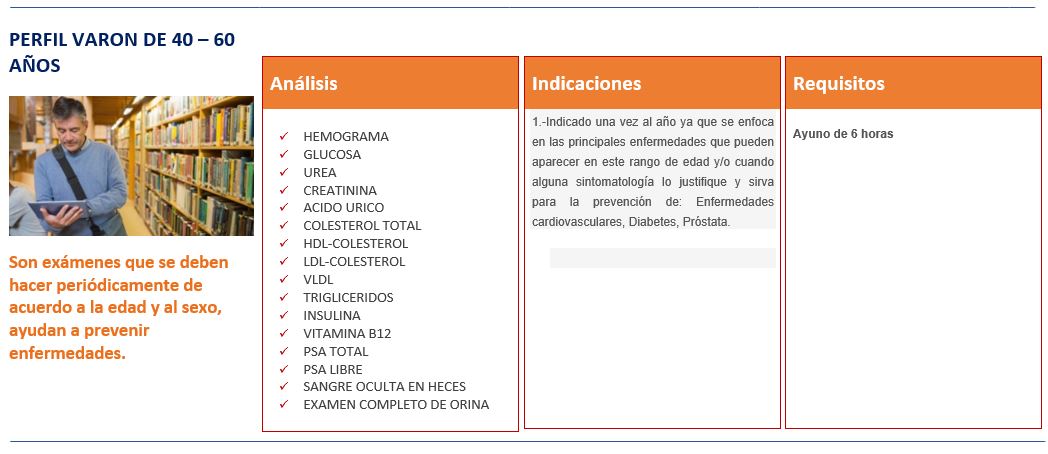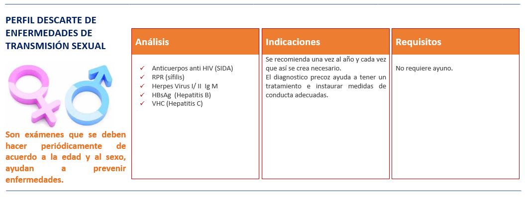 Los perfiles están indicados para controles anuales, en el campo de la medicina preventiva y para controles puntuales cuando un estado de enfermedad lo justifique.