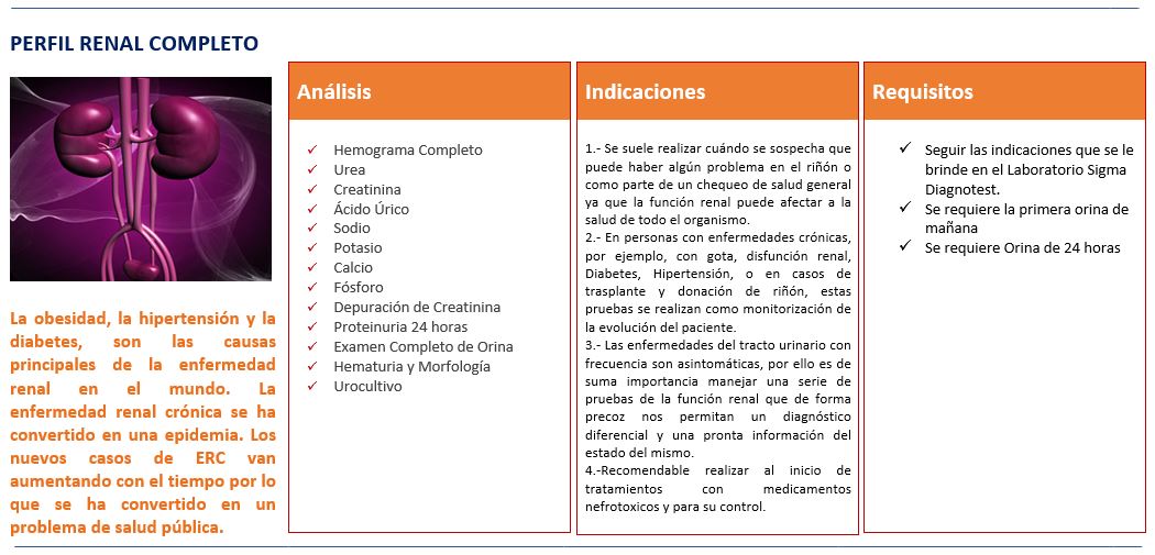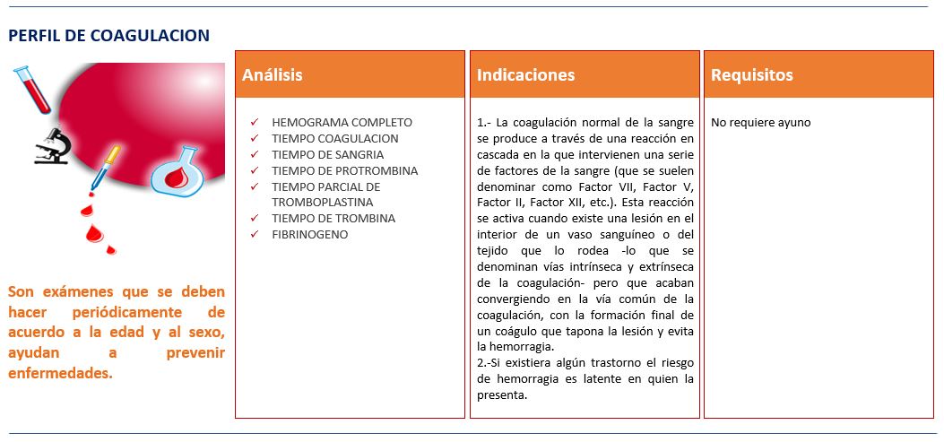 Son un conjunto de exámenes de Laboratorio clínico que informa sobre el estado de un órgano (Ej. Perfil Hepático), de una función y/o condición que involucra a más de un órgano (Ej. Perfil Tiroideo) o de una situación particular que involucra a varias funciones (Ej. Perfil Prenatal)